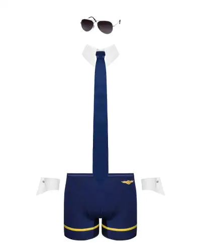 Эротический костюм пилота Obsessive Pilotman set L/XL, боксеры, манжеты, воротник с галстуком, очки