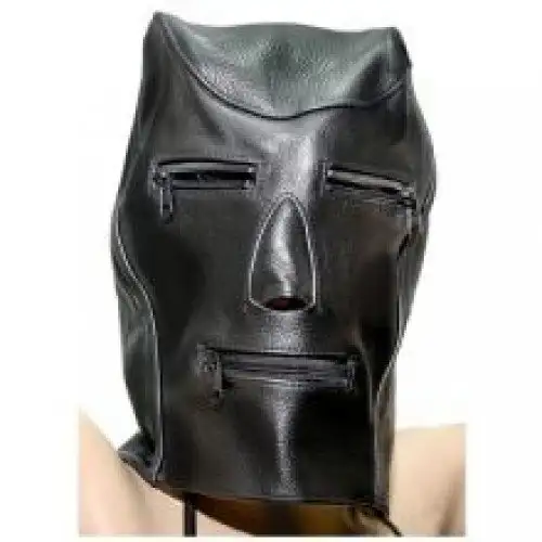 Маска черная для БДСМ сессий.Материал - кожа. Декорированна застежкой - молнией.