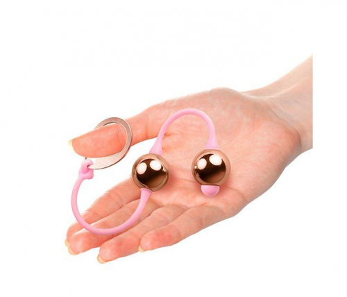 Вагинальные металлические шарики Rocks Off Golden Balls предназначены для женщин, которые уже имеют опыт занятий по методике Кегеля. Благодаря необычной конструкции и весу шариков, этот тренажер подходит не только для тренировки вагинальных мышц, но и для приведения к нормальному тонусу анальных мышц. Устройство выглядит очень женственно и эстетично – мягкий розовый силикон, золотистые металлические шарики.